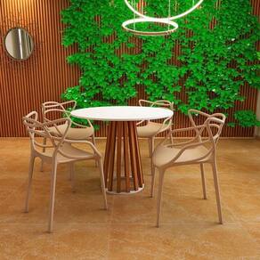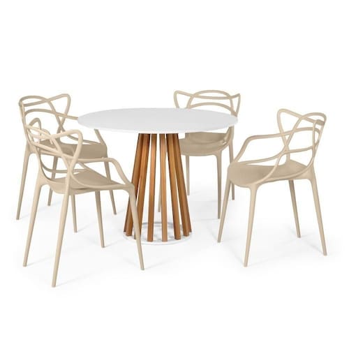 O Conjunto Mesa de Jantar Talia com as Cadeiras Allegra também se destaca por ser um produto elegante e sofisticado, a Mesa Talia Amadeirada possui a sua estrutura feita em Madeira Maciça no formato circular ideal para deixar o seu ambiente com um aspecto mais leve e . A Cadeira Allegra é um item de decoração versátil e inovador, possui diversas linhas que se conectam para formar um design diferenciado e alegre no ambiente. Também se destaca no conforto proporcionado, pois suas curvas se encaixam perfeitamente ao corpo, tornando-se muito aconchegante!