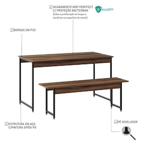 1x Conjunto Mesa de Jantar com 1 Banco Estilo Industrial Active Nogal Necessita Montagem: Sim