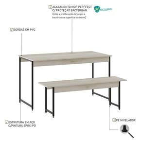 O conjunto de mesa com 01 banco da linha Active é perfeito para sua sala de jantar ou de lazer, levando o estilo de decoração industrial e contemporâneo à sua casa. Fabricado com estrutura em tubos de aço com pintura epóxi e MDP Perffect com Microban que inibe a proliferação de fungos e bactérias, além das fitas em PVC, conferindo muito mais qualidade ao seu móvel.