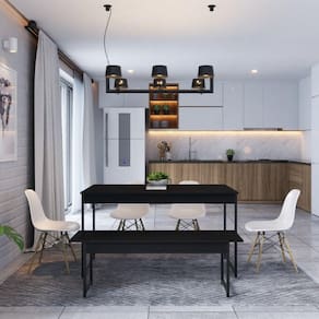 O conjunto de mesa com 01 banco da linha Active é perfeito para sua sala de jantar ou de lazer, levando o estilo de decoração industrial e contemporâneo a sua casa. Fabricado com estrutura em tubos de aço com pintura epóxi e MDP Perffect com Microban que inibe a proliferação de fungos e bactérias, além das fitas em PVC, conferindo muito mais qualidade ao seu móvel. Acabamento da Cadeira/Banco: Acetinado Acabamento da Mesa: Acetinado Almofada do assento: Altura do Conjunto: 74 Ambiente Principal: Sala de Jantar Apoio para Braços Estofado: Cadeira/Banco estofada: Não Cadeira/Banco suporta até: 200 Complexidade da Montagem: Baixa: pode ser montado por uma pessoa sozinha Cor: Preto Onix Cor do Produto: Preto Ônix Enchimento do Assento: Enchimento do Encosto: Escala de Brilho: Fosco Espessura do Tampo: 15 Estrutura do Assento: MDP 15mm Estrutura do Encosto: Informações Complementares: Itens Inclusos: 1 Mesa, 1 Banco, Kit Ferragens e Manual de Montagem Linha ou Coleção: Active Manual de Especificação Técnica: Manual de Montagem e Instalação: https://cdn2.madeiramadeira.com.br/atributo/compace-dalex/956116-manual-yescasa-mesa-de-jantar-1-banco.pdf Material da Base da Mesa: Aço Material da Estrutura da Cadeira: Aço Medida da Base (A x L x P): Medida da Cadeira/Banco (A x L x P): 43 x 129 x 36cm Medida da Mesa (A x L x P): 74 x 135 x 70cm Medida do Canto Alemão (A x L x P): Medida do Suporte Giratório (L x C x E): Medida do Tampo (L x C x E): 70 x 135 x 1,5cm Mesa suporta até: 90 Necessita Montagem: Sim Origem do Produto: Nacional Peso da Cadeira/Banco: 6.92 Peso da Mesa: 14 Possui Apoio para Braços: Não Possui Apoio Para os Pés: Não Possui Suporte Giratório: Recomendações de Uso, Manutenção e Limpeza: Para a limpeza, utilize flanela seca ou pano macio levemente umedecido em água. Utilize um pano seco em seguida. Evite contato com produtos químicos (solventes, thinner, acetona, etc) e não utilize nenhum tipo de esponja de aço. Revestimento da Cadeira/Banco: Sistema de Montagem: Bucha, Parafuso, Pé Nivelador, Pé Tubular Tipo de Madeira Maciça da Base da Mesa: Tipo de Madeira Maciça do Tampo: Vidro Temperado: