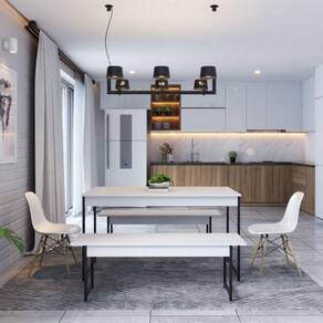 1x Conjunto Mesa de Jantar com 2 Bancos Estilo Industrial Active Branco Chess Necessita Montagem: Sim