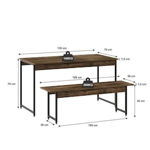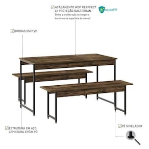 1x Conjunto Mesa de Jantar com 2 Bancos Estilo Industrial Active Carvalho Dark Necessita Montagem: Sim