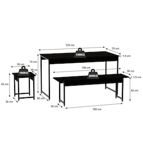 O conjunto de mesa com 02 bancos e 02 Banquetas da linha Active é perfeito para sua sala de jantar ou de lazer, levando o estilo de decoração industrial e contemporâneo a sua casa. Fabricado com estrutura em tubos de aço com pintura epóxi e MDP Perffect com Microban que inibe a proliferação de fungos e bactérias, além das fitas em PVC, conferindo muito mais qualidade ao seu móvel. Acabamento da Cadeira/Banco: Acetinado Acabamento da Mesa: Acetinado Almofada do assento: Altura do Conjunto: 74 Ambiente Principal: Sala de Jantar Apoio para Braços Estofado: Cadeira/Banco estofada: Não Cadeira/Banco suporta até: 200 Complexidade da Montagem: Baixa: pode ser montado por uma pessoa sozinha Cor: Preto Onix Cor do Produto: Preto Ônix Enchimento do Assento: Enchimento do Encosto: Escala de Brilho: Fosco Espessura do Tampo: 15 Estrutura do Assento: MDP 15mm Estrutura do Encosto: Informações Complementares: Itens Inclusos: 1 Mesa, 2 Bancos, 2 Banquetas, Kit Ferragens e Manual de Montagem Linha ou Coleção: Active Manual de Especificação Técnica: Manual de Montagem e Instalação: https://cdn2.madeiramadeira.com.br/atributo/compace-dalex/955965-manual-yescasa-mesa-de-jantar-2-bancos-2-banquetas.pdf Material da Base da Mesa: Aço Material da Estrutura da Cadeira: Aço Medida da Base (A x L x P): Medida da Cadeira/Banco (A x L x P): Banco: 43 x 129 x 36cm | Banqueta: 38 x 36 x 43cm Medida da Mesa (A x L x P): 74 x 135 x 70cm Medida do Canto Alemão (A x L x P): Medida do Suporte Giratório (L x C x E): Medida do Tampo (L x C x E): 70 x 135 x 1,5cm Mesa suporta até: 90 Necessita Montagem: Sim Origem do Produto: Nacional Peso da Cadeira/Banco: 20.62 Peso da Mesa: 14 Possui Apoio para Braços: Não Possui Apoio Para os Pés: Não Possui Suporte Giratório: Recomendações de Uso, Manutenção e Limpeza: Para a limpeza, utilize flanela seca ou pano macio levemente umedecido em água. Utilize um pano seco em seguida. Evite contato com produtos químicos (solventes, thinner, acetona, etc) e não utilize nenhum tipo de esponja de aço. Revestimento da Cadeira/Banco: Sistema de Montagem: Bucha, Parafuso, Pé Nivelador, Pé Tubular Tipo de Madeira Maciça da Base da Mesa: Tipo de Madeira Maciça do Tampo: Vidro Temperado: