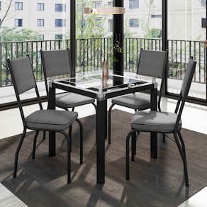 Conjunto Mesa de Jantar Tubular com 4 Cadeiras 258 Malva Tampo Vidro Incolor 75cm SF Preto Assento Platina - Combo Stock