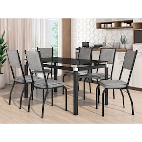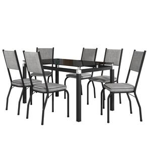 Conjunto Mesa de Jantar Tubular com 6 Cadeiras 258 Malva Tampo Vidro 140cm SF Preto Assento Grafiato - Combo Stock
