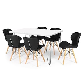 Conjunto Mesa De Jantar Hairpin 130x80 Branca Com 6 Cadeiras Eiffel Slim - Preto