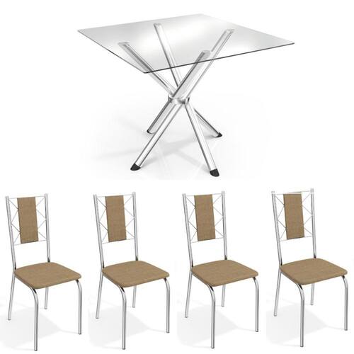 O Conjunto Sala de Jantar Linha Crome da Kappesberg combina elegância, conforto e qualidade, o conjunto ideal para horas de lazer! É composto por 1 mesa com Tampo de Vidro Temperado, 1 base Cromada e 4 cadeiras com estrutura de Metal Cromado, garantindo um conjunto completo e moderno. As 4 cadeiras possuem assento com espuma de alta densidade, além disso, são 100% automatizados e acabado com 100% de polimento, proporcionando um alto padrão de qualidade, conforto e durabilidade. Seu estofamento na cor Capuccino, confere um visual elegante e moderno, tornando-o uma ótima escolha para qualquer sala de jantar. Aproveite a qualidade que o Conjunto da Kappesberg oferece!