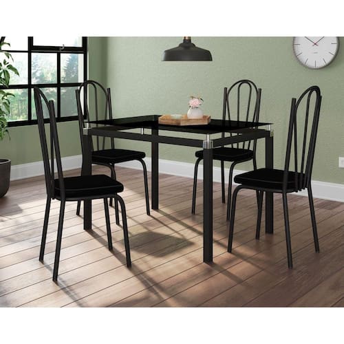 Conjunto Mesa de Jantar Malva 4118 4 Lugares Vidro Tampo Temperado Preto 107CM