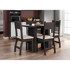 Produto: Conjunto Mesa de Jantar Milano 1,08m com 4 Cadeiras Amendoa/Savana - Poliman Conjunto Mesa de Jantar 4 lugares Milano da Poliman Móveis foi desenvolvido para trazer ainda mais beleza a sua cozinha o design aplicado junto a ergonomia do produto trará momentos agradáveis em família e amigos. A mesa possui bases com barras de travamento para mais resistência e tampo retangular com estrutura em MDP e acabamento em pintura UV garantindo qualidade de acabamento. As 04 cadeiras são em MDF/MDP 15 e 18mm com acabamento nas bordas em PS, assento revestido em courvin de alta resistência com manta de proteção interna de fácil limpeza. Disponível em padrões de cor brilho ou fosco com perfeita combinação nos mais variados ambientes. Qualidade que só a Poliman oferece em seus produtos. Informações adicionais: medida da base: A.750mm x L.385mm x P. 580mm; peso suportado da mesa: 50kg ; peso suportado da cadeira: 100kg ; densidade do assento da cadeira: D11; altura do chão até o assento: 470mm. Mesa em MDP de 15mm, cadeira com assentos com espuma revestida em courvin de alta resistência, trava traseira, Pintura UV, cadeiras com bordas em PS. Altura Mesa (mm): 770 Largura Mesa (mm): 675 Profundidade Mesa (mm): 1080 Altura Cadeira (mm): 920 Largura Cadeira (mm): 371 Profundidade Cadeira (mm): 410 Formato da Mesa: retangular Quantidade de Lugares: 4 Peso Suportado Mesa: 50 kilos Peso Suportado da Cadeira: 100 kilos Tamanho do Tampo: 1080 x 675 x 15 mm Medida da Base da Mesa: 750 x 385 x 575mm Sapatas: mesa: 04 sapatas / cadeira: 04 sapatas cada Material/Tipo de Assento: Mesa: MDP 15mm - Cadeira: MDP 15mm/MDF 18mm - Assento em courvin Acabamento: pintura UV Tipo de Pintura: fosco Conteúdo da Embalagem: Mesa com tampo, 4 cadeiras, manual de montagem e acessórios de montagem. Peso Líquido: 37,7