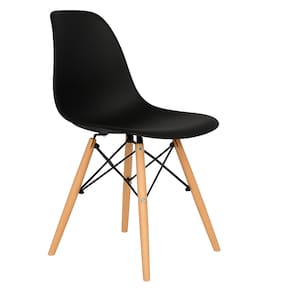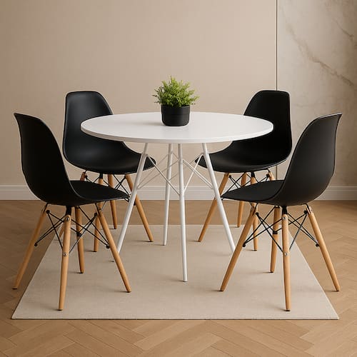 4 cadeiras Eames pretas, reconhecidas pelo design ergonômico e elegante