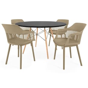 Cor: Nude Escuro | Fabricante: Magazine Decor | Quantidade de Lugares: 4 | Peso do Produto: 50 | Largura: 100 | Produto: Mesa e Cadeiras | Altura: 75 | Tonalidade: Nude Escuro | Tipo de Conjunto: Mesa e Cadeiras | Áreas Indicadas: Cozinha | Coleção Jardim: Não | Uso Indicado do Móvel: Mesa de Jantar | do modelo: 1 | Exige montagem: Sim | Baterias são necessárias?: Não | Certificação de teste externa: Não | Is Fragile: Não | de caixas: 2 | da peça: 1 | Peso do item: 50 | Principais Características do Produto (bullet_point#0): O Conjunto de Mesa de Jantar Redonda Eiffel com as Cadeiras Marcela, é uma escolha excepcional para quem busca unir estilo, praticidade e conforto em sua sala de jantar. | Principais Características do Produto (bullet_point#1): A Mesa de Jantar Eiffel, com dimensões de 120cm, é construída em MDF Laqueado de alta qualidade, garantindo durabilidade e facilidade de limpeza. | Principais Características do Produto (bullet_point#2): O visual moderno e minimalista da Cadeira Marcela adiciona um toque de elegância ao seu espaço. | Componentes incluídos: 1 Mesa + 4 Cadeiras | Quantidade de itens: 5 | Dimensões do item P x L x A: 75x100x100