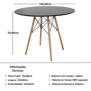 A Mesa Eiffel Redonda, com seus 100cm de diâmetro, traz uma aura de modernidade e sofisticação para sua sala de jantar ou cozinha. Seja para reuniões familiares, jantares íntimos ou até mesmo para momentos de trabalho em casa, este conjunto é a escolha perfeita. A Mesa possui seu tampo feito em MDF Laqueado e a sua base madeira e metal, materiais resistentes que garantem alta durabilidade ao produto.