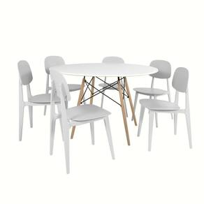 Conjunto Mesa de Jantar Redonda Eiffel Branca 120cm com 6 Cadeiras Itália