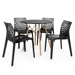Conjunto Mesa de Jantar Redonda Eiffel 80cm Preta com 4 Cadeiras Gruvyer
