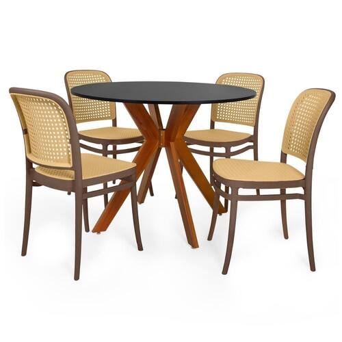 Conjunto Mesa de Jantar Redonda Marci 100cm com 4 Cadeiras Roma
