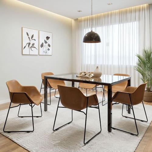 Transforme a sua decoração para sala de jantar com nosso conjunto de mesa com 6 cadeiras que une conforto e elegância. O design único em formato de concha da cadeira abraça seu corpo com conforto absoluto, enquanto a robusta base de aço garante durabilidade e sofisticação. Perfeito para famílias que valorizam momentos especiais à mesa, oferece espaço generoso para refeições memoráveis. A harmonia entre formas orgânicas e estrutura de aço cria um visual contemporâneo irresistível. Cada refeição vira experiência, cada encontro se torna inesquecível.