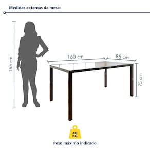Qual é o benefício de uma cadeira com tratamento anti-Uva? O tratamento protege contra os raios solares que causam o debotamento. Medida da Mesa (A x L x P): 75x160x85 Peso da Mesa: 27,5 kg Mesa suporta até: 40 kg Acabamento da Cadeira/Banco: Pintura Acabamento da Mesa: Pintura UV Ambiente Principal: Sala de Jantar Cadeira/Banco estofada: Não Cadeira/Banco suporta até: 120 kg codigo_ean: 7900288244918 Complexidade da Montagem: Média: pode ser montado por mais de uma pessoa e/ou necessite de maior conhecimento para montagem Configuração do Conjunto: Mesa com Cadeiras Cor: Preto/Pinus Cor da Base: Preto Cor das Cadeiras: Marrom Cor do Produto: Preto/Pinus Cor do Tampo: Preto Cor Secundária: Marrom De Canto (Canto Alemão): Não Escala de Brilho: Semi-Brilho Espessura do Tampo: 8 mm Espessura do Vidro: 8 mm Estrutura do Assento: Polipropileno Formato do Tampo: Retangular Itens Inclusos: 1 Mesa, 6 Cadeiras e Kit Ferragens Linha ou Coleção: Lodelô/Smart Manual de Montagem e Instalação: https://cdn2.madeiramadeira.com.br/atributo/prima-design/3201298-5541-17577052269861.pdf Marca: Prima Design Material da Base da Mesa: Aço Carbono Material da Estrutura da Cadeira: Aço Carbono Material do Tampo: Vidro Medida da Cadeira/Banco (A x L x P): 73x55x56 Medida do Tampo (L x C x E): 160x85x28 Mesa Extensível: Não Necessita Montagem: Sim Origem do Produto: Nacional Peso da Cadeira/Banco: 6,2 kg Possui Apoio Para os Pés: Não Quantidade de Cadeiras: 6 Quantidade de Lugares: 06 Recomendações de Uso, Manutenção e Limpeza: A estrutura deve ser limpa utilizando pano seco de algodão ou flanela. Se necessário, utilize pano umedecido apenas com água, secando o móvel em seguida. Não utilize solvente, álcool, acetona, lustra móveis, produtos abrasivos e outros produtos que contenham soda e ou ácidos para limpar e tirar manchas dos móveis. Não expor os móveis à luz solar e ambientes com umidade relativa elevada. Manter a estrutura metálica limpa, utilizando pano seco ou cera a base de silicone. Sistema de Montagem: Parafusos Vidro Temperado: Sim Marca: Não Informado