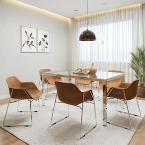 Transforme a sua decoração para sala de jantar com nosso conjunto de mesa com 6 cadeiras que une conforto e elegância. A cadeira com design único de concha abraça seu corpo com conforto absoluto, enquanto o tampo de vidro e a base de aço da mesa criam sofisticação total. Perfeito para famílias que valorizam momentos especiais, oferece espaço generoso para refeições memoráveis. A harmonia entre formas orgânicas e estrutura metálica cria visual contemporâneo irresistível. Cada refeição vira experiência inesquecível. O conjunto completo que sua casa merece!
