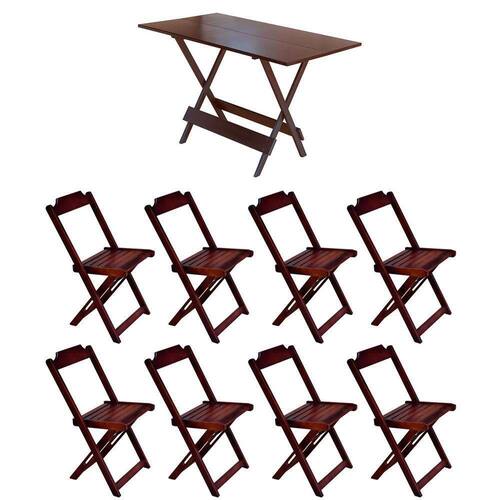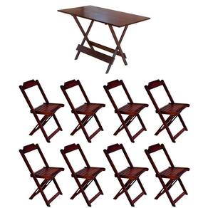 Conjunto Mesa De Madeira Dobravel 120X70 Imbuia 8 Cadeiras - Marrom