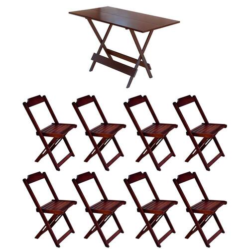 Conjunto Mesa De Madeira Dobravel 1,20x70 Imbuia 8 Cadeiras