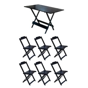 Conjunto Mesa De Madeira Dobravel 120x70 Preto 6 Cadeiras - Cor: Preto