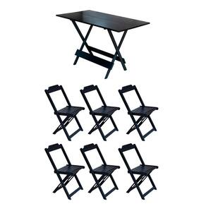 Conjunto Mesa De Madeira Dobravel 1,20x70 Preto 6 Cadeiras