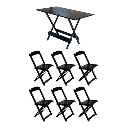 Conjunto Mesa de Madeira Dobravel 120x70 Tabaco 6 Cadeiras - Marrom