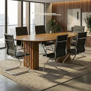 Resistência: Suporta até 120 kg. Acabamento: Pintura UV Altura do Conjunto: 89 cm Ambiente: null Ambiente Principal: Escritório Cor: Freijo / Preto Informação Complementar: 6x Cadeira Escritório Interlocutor Fixa Esteirinha Sintético 3301 Preto Largura: 54,5 cm Altura: 89 cm Peso: 12,19 kg Profundidade: 47 cm Necessita Montagem: Sim