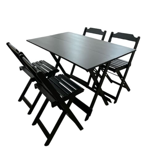 Madeira, MDFConjunto Mesa Dobrável 1,20m com Tampo em MDF Ultra Plus e 4 Cadeiras Dobráveis Preto -