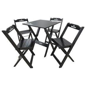 Conjunto Mesa Dobrável 60x60 Com 4 Cadeiras De Madeira Personalizada Hei Preta - Cor: Preto