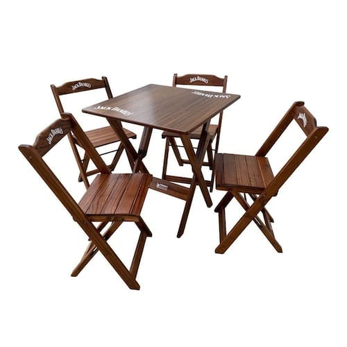 É ideal para bares, restaurantes, estabelecimentos, áreas de lazer e também para sua casa. Em madeira tornando-os resistentes e duráveis. Seu design permite que esse conjunto seja encaixado em qualquer ambiente, trazendo um toque a mais para seu estabelecimento. Além de sua durabilidade, o que lhe trará conforto para servir seus clientes. Por ser dobrável torna-se mais fácil guardar, manusear e limpar o produto.