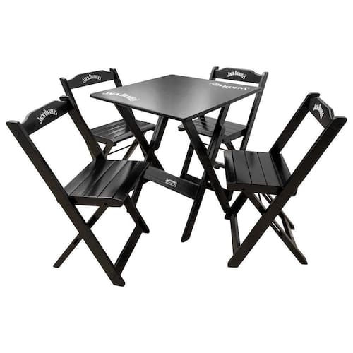 Conjunto Mesa Dobrável 60x60 Com 4 Cadeiras De Madeira Personalizada Jack Preta - Tarimatã