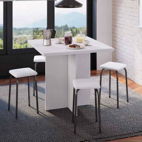 +Conjunto+de+mesa+Bona+Vita%2C+toda+em+MDP%2C+com+4+mochos+em+tubo+preto%2C+estofados+na+Cr+branca%2C+que+se+encaixam+embaixo+da+mesa%2C+ocupando+pouco+espa%E7o%2C+ideal+para+cozinha+ou+pequenos+ambientes.+Pr%E1tica+e+vers%E1til%2C+era+o+que+faltava+para+a+sua+mob%EDlia. Acabamento da Cadeira/Banco: Pintura Epóxi Acabamento da Mesa: Pintura UV Almofada do assento: Fixa Cadeira/Banco estofada: Sim Cadeira/Banco suporta até: 80 kg calculo: unidade Complexidade da Montagem: Baixa: pode ser montado por uma pessoa sozinha Cr: Branco/Preto Cr do Produto: Branco/Preto Enchimento do Assento: Espuma D-18 Escala de Brilho: Semi-Brilho Espessura do Tampo: 30 mm Estrutura do Assento: MDP 15mm Formato: Quadrado Itens Inclusos: 1 Mesa, 4 Bancos e Manual de montagem Linha ou Coleção: Verona Manual de Montagem e Instalação: https://cdn2.madeiramadeira.com.br/atributo/bona-vita-moveis/504343-mesa-verona.pdf Material da Base da Mesa: MDP Material da Estrutura da Cadeira: Aço Material do Tampo: MDP Medida da Base (A x L x P): 73,5cm x 56cm x 56cm Medida da Cadeira/Banco (A x L x P): 45cm x 25cm x 25cm Medida da Mesa (A x L x P): 73cm x 70cm x 70cm Medida do Tampo (L x C x E): 70cm x 70cm x 3cm Mesa suporta até: 80 kg Necessita Montagem: Sim Origem do Produto: Nacional Peso da Cadeira/Banco: 1 kg Peso da Mesa: 14 kg Possui Apoio para Braços: Não Possui Apoio Para os Pés: Não Possui Suporte Giratório: Não Quantidade de Lugares: 04 Recomendações de Uso, Manutenção e Limpeza: Limpar com pano umedecido e sabão neutro. Revestimento da Cadeira/Banco: Napa Sistema de Montagem: Parafusos, cavilha, cola, pregos, sapata e cantoneiras. status-cadastro: Aprovado Tamanho: