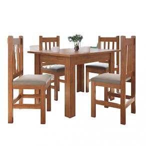 Características mesa: Estrutura MDF e MDP Tampo em BP Acabamento: revestimento em pintura esmalte UV brilhante Estrutura da cadeira: madeira de eucalipto e mista Acabamento: Pintura ultravioleta