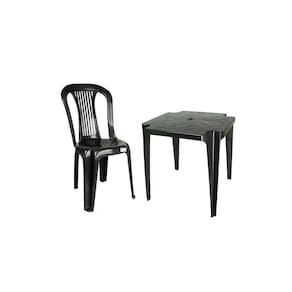CARACTERÍSTICAS . mesa monobloco modelo ouro preto quadrada 70x70 cm . cadeiras bistrô modelo ponte nova sem apoio para braços . cor preto . mesa suporta até 20 kg, cadeira até 120 kg . fabricação em poliuretano virgem e reciclado . cadeira e mesa pode ser empilhada com facilidade após o uso