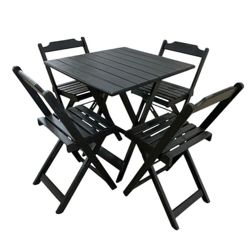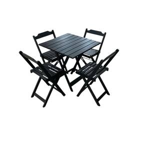MadeiraConjunto Mesa e 4 Cadeiras Dobráveis em Madeira Preto -