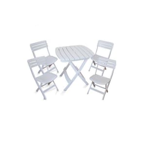 O produto é fácil de transportar, limpar e ocupa pouco espaço. CARACTERÍSTICAS . mesa dobrável ripada . cadeiras dobráveis ripada . cor branco . cadeira suporta até 90 Kg . prático para guardar . leve para carregar . fácil transporte . limpeza feita com água e sabão neutro com esponja ou tecido