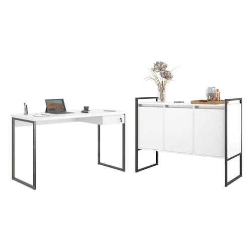 Conjunto Mesa E Buffet Garruer Branco CONJUNTO ESCRIVANINHA E BUFFET O Buffet veio para compor sua sala ou cozinha com seu charme industrial para a renovação do seu ambiente bonito e moderno.