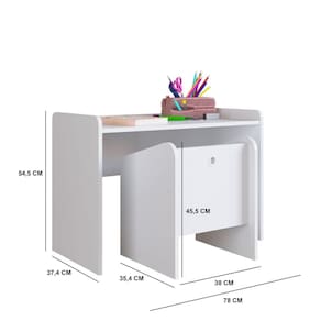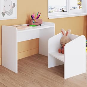 O conjunto CJ7001 possui estrutura em MDP 15mm e acabamento FF fosco. Mesa suporta até 20kg e cadeira suporta até 35kg. Conteúdo da embalagem: móvel, ferragens e manual de montagem. A fixação das peças e/ou acessórios é feita por parafusos e cavilhas. Para uma limpeza mais efetiva, utilizar apenas pano macio umedecido e sabão neutro. Não utilizar produtos abrasivos. Garantia de 03 meses contra defeitos de fabricação. Medidas do produto MESA (AxLxP): 54,5x78x37,4cm. Medidas do produto CADEIRA (AxLxP): 45,5x38x35,4cm. Peso do CONJUNTO: 13,7kg.