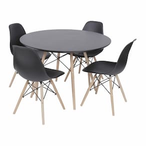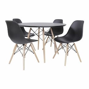 CONJUNTO DE 1 MESA EAMES PRETA 1,10CM + 4 CADEIRAS EAMES PRETA