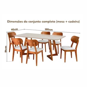 Surreal, não é mesmo? O Conjunto Mesa Espanha com 6 Cadeiras de Madeira Maciça, Multilaminada e Estofada Letícia Authentic traz um toque de elegância e sofisticação na sua sala de jantar, deixando o ambiente muito agradável. Os conjuntos de cadeiras tem sua estrutura 100% em Madeira Maciça, Assento e Encosto estofado Premium em D-16 e D-18 e já vão 100% montadas, facilitando ainda mais. Com acabamento impecável em verniz, tem como essência a robustez e naturalidade ao mesmo tempo. Possui uma estrutura mega resistente e uma durabilidade acima da média. É realmente uma preciosidade em forma de móvel! Medida da Mesa (A x L x P): 79X 180 X 90 Peso da Mesa: 52 kg Mesa suporta até: 150.0000 Acabamento da Cadeira/Banco: Verniz Natural Acabamento da Mesa: Verniz Acompanha Manual de Instalação: Sim Almofada do assento: Fixa Altura do Conjunto: 84 cm Ambiente Principal: Sala de Jantar Cadeira/Banco Estofada: Somente Assento Estofado Cadeira/Banco estofada: Somente Assento Estofado Cadeira/Banco suporta até: 120.0000 codigo_ean: 7900288155092 Complexidade da Montagem: Baixa: pode ser montado por uma pessoa sozinha Configuração do Conjunto: Mesa com Cadeiras Cor: Champagnhe/Off White Cor da Base: Marrom Cor das Cadeiras: Marrom Cor do Produto: Champagnhe/Off White Cor do Tampo: Off White Cor Flex: Não Cor Secundária: Bege De Canto (Canto Alemão): Não Design da Base: Trapézio Escala de Brilho: Semi-Brilho Espessura do Tampo: 2,8 mm Formato do Tampo: Retangular Informações Complementares: Todas as nossas estruturas são 100% de madeira Maciça EucaliptoCadeiras suportam 120 kgTodas as cadeiras vão 100% montadas Itens Inclusos: 1 Mesa, 6 Cadeiras e Kit Ferragens Largura do Conjunto: 180 cm Linha ou Coleção: Authentic Manual de Especificação Técnica: https://product-hub-prd.madeiramadeira.com.br/473210055/documents/88ecd252-d23d-4518-a67f-4db8cb5f64062937801544617476089475271.pdf Manual de Montagem e Instalação: https://product-hub-prd.madeiramadeira.com.br/473210055/documents/b565aedc-428f-41ed-bb80-54dc0deaa8b92937800544617476089323834.pdf Marca: Espresso Móveis Material da Base da Mesa: Madeira Maciça Material da Estrutura da Cadeira: Madeira Maciça Material do Tampo: Vidro/MDF Material Principal: Madeira Maciça Material Principal das Cadeiras/Bancos: Madeira Maciça Medida da Base (A x L x P): 77 X 40 X 65 Medida da Cadeira/Banco (A x L x P): 84 X 47 X 56,5 Medida do Tampo (L x C x E): 90 X 180 X 2,8 Mesa Dobrável: Não Mesa Extensível: Não Montagem Flex: Não Necessita Montagem: Sim Origem do Produto: Nacional Peso da Cadeira/Banco: 6,5 kg Possui Apoio para Braços: Não Possui Apoio Para os Pés: Não Possui Prateleiras: Não Possui Suporte Giratório: Não Possui Vidro: Sim Profundidade do Conjunto: 90 cm Quantidade de Cadeiras: 6 Quantidade de Lugares: 06 Recomendações de Uso, Manutenção e Limpeza: Para manter seu móvel novo por muito mais tempo, evite locais úmidos, mantenha-o distante de líquidos. Para limpá-lo com segurança utilize uma flanela seca sem produtos abrasivos, que por sua vez desgastam o produto. Revestimento da Cadeira/Banco: Poliéster Sistema de Montagem: parafusos e sapatas Tipo de Assento: Fixo Tipo de Encosto: Fixo Tipo de Madeira Maciça da Base da Mesa: Eucalipto