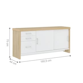 O balcão contém três amplas gavetas possibilitando a abertura total da gaveta com deslizamento suave e resistente facilitando a organização de cadernos , livros e papéis. acompanha chave na parte interna para o travamento de todas as gavetas trazendo mais e privacidade.