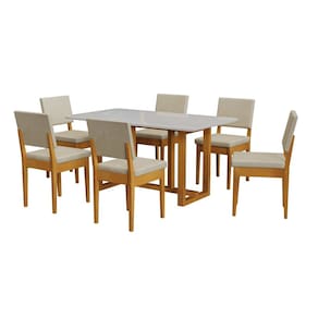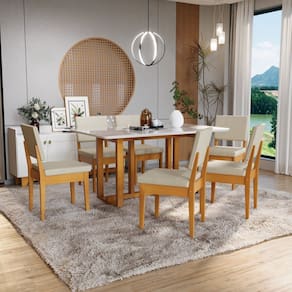 O Conjunto de Sala de Jantar Filadélfia e Cadeiras Miami, da Móveis Meneghetti, é a união perfeita de funcionalidade e design contemporâneo. A mesa Filadélfia se destaca pelo tampo de MDF com vidro colado de fábrica, proporcionando um visual sofisticado e leve. Seus pés em madeira maciça de eucalipto conferem durabilidade e um toque conservador. Já as cadeiras Miami são puro estilo e qualidade, com estrutura 100% em madeira de eucalipto e estofamento em linho, garantindo conforto e maciez. Este conjunto é ideal para quem busca renovar o ambiente com peças neutras, modernas e que transmitem leveza. Estilo: Moderno Formato: Retangular Garantia: 03 Meses Altura (cm): 78 Largura (cm): 90 Profundidade (cm): 160 Cor da Base: Laranja Cor do Tampo: Off White Cor Secundária: Laranja Cor das Cadeiras: Laranja Cor do Produto: Cerejeira/Palha Cor Predominante: Laranja Peso da Mesa (kg): 49.4 Peso da Cadeira/Banco (kg): 7.5 Mesa Suporta Até (kg): 150 Cadeira/Banco Suporta Até (kg): 120 Material Principal: Madeira Eucalipto Material do Tampo: MDF Material da Base da Mesa: Madeira Maciça Tipo de Madeira Maciça da Base da Mesa: Eucalipto Acabamento da Mesa: Pintura UV Acabamento da Cadeira/Banco: Pintura UV Revestimento da Cadeira/Banco: Linho Material da Estrutura da Cadeira: Madeira Maciça Tipo de Assento: Fixo Tipo de Encosto: Fixo Almofada do Assento: Fixa Enchimento do Assento: Espuma D-23 Enchimento do Encosto: Espuma Possui Vidro: Sim Mesa Dobrável: Não Mesa Extensível: Não Possui Rodízios: Não Possui Apoio para Braços: Não Possui Apoio para os Pés: Não Possui Suporte Giratório: Não Design da Base: Quadrado Formato do Tampo: Retangular Escala de Brilho: Brilhante Quantidade de Lugares: 06 Quantidade de Cadeiras: 6 Possui Prateleiras: Não De Canto (Canto Alemão): Não Configuração do Conjunto: Mesa com Cadeiras Origem do Produto: Nacional Ambiente Principal: Sala de Jantar Necessita Montagem: Sim Complexidade da Montagem: Média Sistema de Montagem: Parafusos e cavilhas. Acompanha Manual de Instalação: Sim Recomendações de Uso, Manutenção e Limpeza: Limpar com pano seco e limpo. Marca: Móveis Meneghetti Itens Inclusos: 1 Mesa 6 Cadeiras EAN MadeiraMadeira: 7900288078131 Medida da Mesa (A x L x P): 78cm x 90cm x 160cm Medida da Cadeira/Banco (A x L x P): 92cm x 44cm x 53cm
