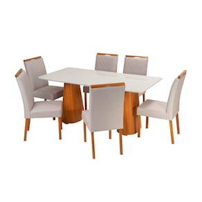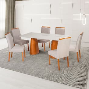 Surreal, não é mesmo? O Conjunto Mesa Torres com 6 Cadeiras de Madeira Maciça, Estofada e Bordada Liz Authentic traz um toque de elegância e sofisticação na sua sala de jantar, deixando o ambiente muito agradável. Os conjuntos de cadeiras tem sua estrutura 100% em Madeira Maciça, Assento e Encosto estofado Premium em D-16 e D-18 e já vão 100% montadas, facilitando ainda mais. Com acabamento impecável em verniz, tem como essência a robustez e naturalidade ao mesmo tempo. Possui uma estrutura mega resistente e uma durabilidade acima da média. É realmente uma preciosidade em forma de móvel! Medida da Mesa (A x L x P): 79x90x180 Peso da Mesa: 55 kg Mesa suporta até: 150 kg Acabamento da Cadeira/Banco: Verniz Natural Acabamento da Mesa: Verniz Acompanha Manual de Instalação: Sim Almofada do assento: Fixa Altura do Conjunto: 100 cm Ambiente Principal: Sala de Jantar Cadeira/Banco estofada: Encosto e Assento Estofados Cadeira/Banco suporta até: 120 kg Complexidade da Montagem: Baixa: pode ser montado por uma pessoa sozinha Configuração do Conjunto: Mesa com Cadeiras Cor: Champagnhe/Off White/Cinza Cor da Base: Marrom Cor das Cadeiras: Cinza Cor do Produto: Champagnhe/Off White/Cinza Cor do Tampo: Off White Cor Flex: Não Cor Secundária: Cinza De Canto (Canto Alemão): Não Design da Base: Pedestal Duplo Enchimento do Assento: Espuma D-18 Enchimento do Encosto: Espuma D-16 Escala de Brilho: Semi-Brilho Espessura do Tampo: 2,8 mm Espessura do Vidro: mm Estrutura do Assento: Madeira Maciça + espuma D-18 Estrutura do Encosto: ESPUMA D-16 Formato do Tampo: Retangular Informações Complementares: Todas as nossas estruturas são 100% de madeira Maciça EucaliptoCadeiras suportam 120 kgTodas as cadeiras vão 100% montadas Itens Inclusos: 1 Mesa, 6 Cadeiras, Kit Ferragens e Manual de Montagem Largura do Conjunto: 90 cm Linha ou Coleção: Authentic Manual de Especificação Técnica: https://cdn2.madeiramadeira.com.br/atributo/top-glass-distribuidora-de-vidros/2900543-5446-1746408975527.pdf Manual de Montagem e Instalação: https://cdn2.madeiramadeira.com.br/atributo/top-glass-distribuidora-de-vidros/2900542-5446-1746408968806.jpg Marca: Espresso Móveis Material da Base da Mesa: Madeira Maciça Material da Estrutura da Cadeira: Madeira Maciça Material do Tampo: Vidro/MDF Material Principal: Madeira Maciça Material Principal das Cadeiras/Bancos: Madeira Maciça Medida da Base (A x L x P): 74x34x51 Medida da Cadeira/Banco (A x L x P): 100x46x56 Medida do Tampo (L x C x E): 90x180x2,8 Mesa Dobrável: Não Mesa Extensível: Não Montagem Flex: Não Necessita Montagem: Sim Origem do Produto: Nacional Peso da Cadeira/Banco: 8 kg Possui Apoio para Braços: Não Possui Apoio Para os Pés: Não Possui Prateleiras: Não Possui Rodízio: Não Possui Vidro: Sim Profundidade do Conjunto: 180 cm Quantidade de Cadeiras: 6 Quantidade de Lugares: 06 Recomendações de Uso, Manutenção e Limpeza: Para manter seu móvel novo por muito mais tempo, evite locais úmidos, mantenha-o distante de líquidos. Para limpá-lo com segurança utilize uma flanela seca sem produtos abrasivos, que por sua vez desgastam o produto. Revestimento da Cadeira/Banco: Linho Sistema de Montagem: parafusos e sapatas Tipo de Assento: Fixo Tipo de Encosto: Fixo Tipo de Madeira Maciça da Base da Mesa: Eucalipto