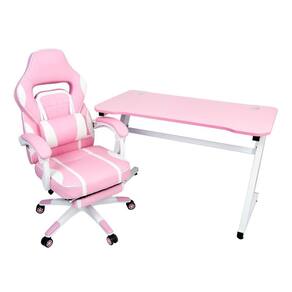 A Mesa Gamer PEL-008P Rosa tem estrutura metálica branca e tampo em MDF com revestimento rosa, que combina perfeitamente com a Cadeira Gamer PEL-3020 Rosa, que é revestida em couro PU rosa com detalhes em branco, encosto reclinável e apoio retrátil para as pernas localizado abaixo do assento que pode ser facilmente acionado; proporcionando muito mais conforto e garantindo uma ótima postura.