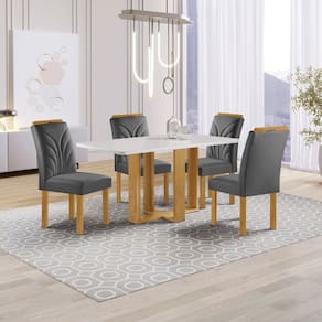 Sim, as Cadeiras Carolina possuem um design ergonômico que garante conforto e estabilidade. Medida da Mesa (A x L x P): 79cmx120cmx90cm Peso da Mesa: 49,4 kg Mesa suporta até: 40.0000 Acabamento da Cadeira/Banco: Pintura Acabamento da Mesa: Pintura UV Acompanha Manual de Instalação: Sim Almofada do assento: Fixa Ambiente Principal: Sala de Jantar Cadeira/Banco estofada: Encosto e Assento Estofados Cadeira/Banco Estofada: Encosto e Assento Estofados Cadeira/Banco suporta até: 120.0000 codigo_ean: 7900288099051 Complexidade da Montagem: Alta: deve ser montado por um montador especializado Cor: Cinamomo/Off White/Cinza Cor do Produto: Cinamomo/Off White/Cinza Cor Secundária: Bege De Canto (Canto Alemão): Não Enchimento do Assento: Espuma D-23 Escala de Brilho: Fosco Espessura do Tampo: 29 mm Formato do Tampo: Retangular Itens Inclusos: 1 Sala de Jantar e manual de montagem. Manual de Montagem e Instalação: https://product-hub-prd.madeiramadeira.com.br/982528/documents/5d3a8ff7-58ae-4ca8-81e7-7286ee53dfd812351742842446982528151093.pdf Marca: Cel Móveis Material da Base da Mesa: MDF Material da Estrutura da Cadeira: MDF Material do Tampo: Vidro/MDF Material Principal: MDF Medida da Cadeira/Banco (A x L x P): 98,5cmx44cmx58cm Medida do Tampo (L x C x E): 120cmx90cmx29mm Mesa Extensível: Não Necessita Montagem: Sim Origem do Produto: Nacional Peso da Cadeira/Banco: 9,25 kg Possui Apoio Para os Pés: Não Quantidade de Cadeiras: 4 Quantidade de Lugares: 04 Recomendações de Uso, Manutenção e Limpeza: Limpeza com pano macio e levemente umedecido. Não utilizar solventes a base e de inflamáveis. Não utilizar produtos abrasivos. Revestimento da Cadeira/Banco: Veludo Sistema de Montagem: Parafusos. Tipo de Assento: Fixo Tipo de Encosto: Fixo