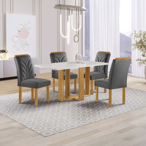O Conjunto Isadora 170cm x 90cm com 6 Cadeiras Carolina é a escolha ideal para quem busca sofisticação e conforto na sala de jantar. Seu design elegante e contemporâneo traz um toque de requinte ao ambiente, enquanto as cadeiras garantem máximo conforto para refeições prolongadas. O tampo Smart Plus com vidro Off White facilita a limpeza e adiciona um acabamento refinado ao conjunto. Perfeito para reunir a família e os amigos.