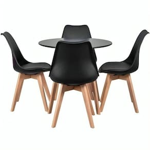 Conjunto Mesa Jantar Moderna Leda 90 Cm Com 4 Cadeiras Leda Elegante Preta. - Preto