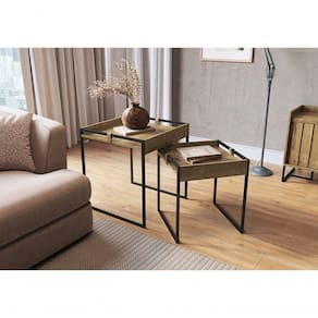 Apresentamos o Conjunto de Mesas Laterais Columbia - um toque moderno e luxuoso para sua decoração. Com elegante pintura epóxi dourada e sustentação em couro, estas mesas são mais do que simples móveis, são expressões de estilo e sofisticação. Adorne seu espaço com esse conjunto que une design contemporâneo e materiais de alta qualidade, elevando o charme e a funcionalidade. Transforme seu ambiente com o glamour irresistível das Mesas Laterais Columbia.