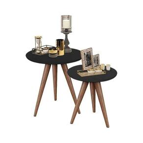 Conjunto Mesa Lateral de Apoio Retrô Pés Palito Quality Móveis Preto